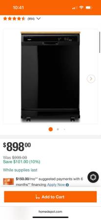 This dishwasher is in great shape,works fine we just do not need it anymore because our new house came with a dishwasher. New they are $999 I am looking for $500 or best offer