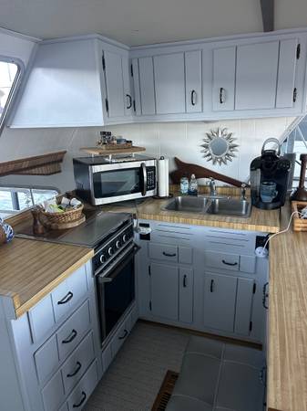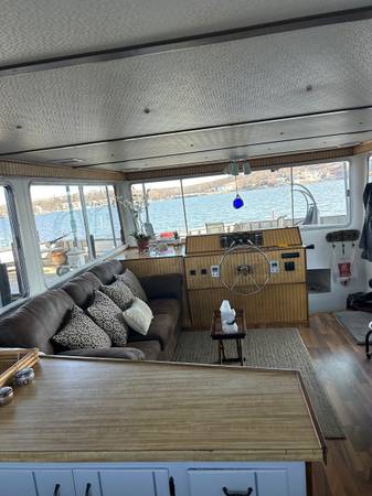 Hello , I’m putting my home at the lake up for sale . Recently in 2024 complete remodeling of interior- new flooring- paint- hardware- light fixtures- tinted windows- all furniture and tvs appliances etc.. stay with boat. This boat is docked at the moorings yatch club at the 19 mile marker. The slip fee is $7300 per year which includes power-water-trash- gated community-swimming pool-clubhouse and great views of the lake. I purchased this boat 4 years ago because it was the most economical way to enjoy the lake without spending a ton of money on a little cabin. The boat is in great shape with engines 2 454 Mercruisers and a westerbeke generator all in operating condition. All have been winterized and I have a video of them running before winterized. The area where boat is located has all kinds of great food and restaurants within 5 miles. I usually never took the boat across the lake , it was my home on the water . Please see pictures for condition and leave your phone number through email if you would like to ask any questions. This boat can sleep 6 people comfortably and is a great weekend retreat! Thanks for your interest.