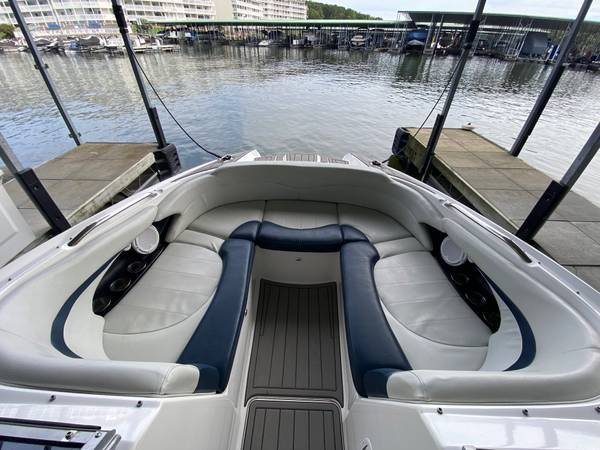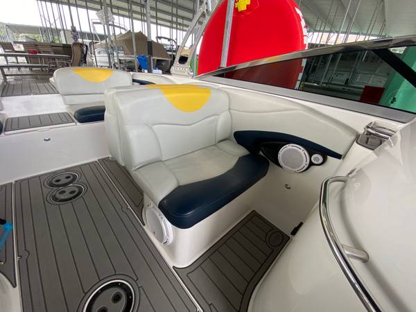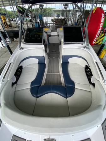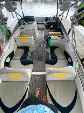 2022 updates include the following. New Dark Blue Hull paint, New props, Re-Upholstered seating in heavier more durable vinyl, SeaDek Flooring from swimplatform to bow, Updated Fushion Sound system and watersports tower speakers, under water lights.