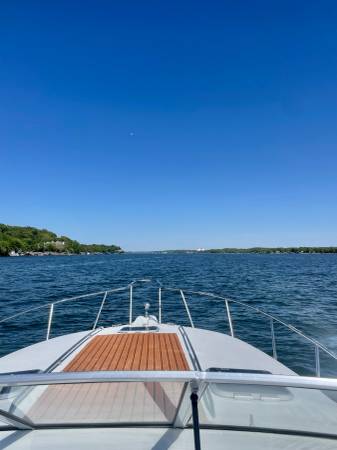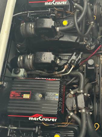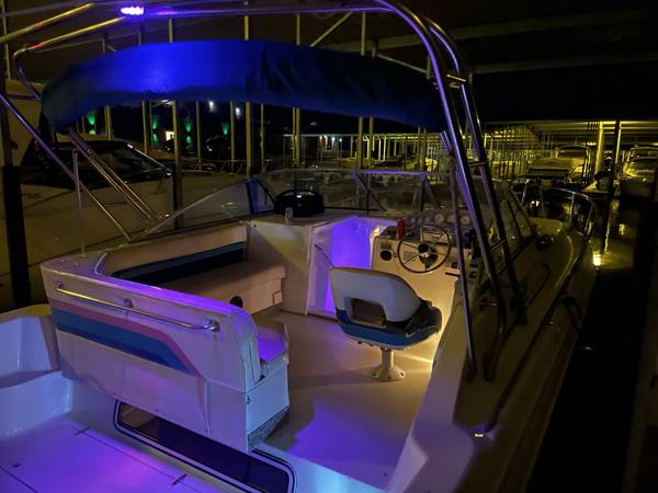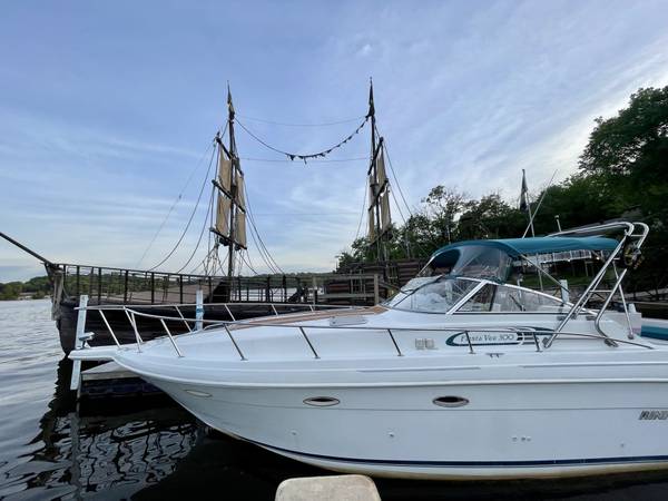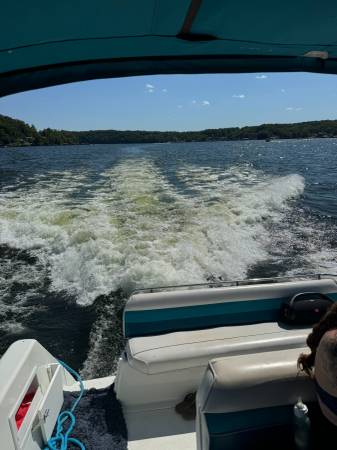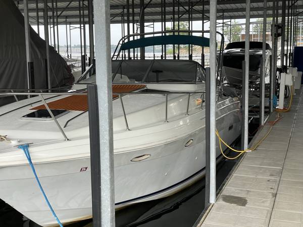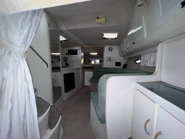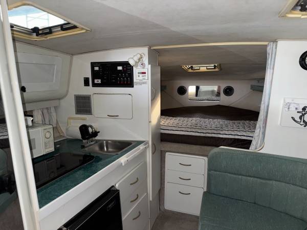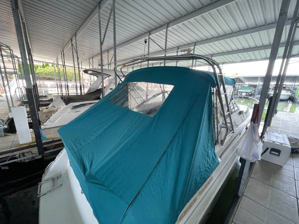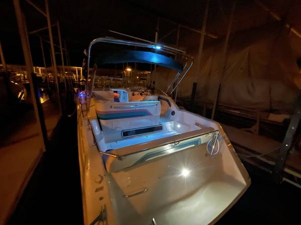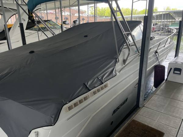 Excellent running and driving boat. The interior is in immaculate condition. Regular maintenance records available. Serviced by Bergers Marina on their regular winterization/maintenance schedule. The boat is turnkey, and we will test drive it! ICE COLD A/C and the heat works great for fall boat camping. Fuel gauge is less than accurate but EVERYTHING else is working. Including the trim tabs and trim both sides-everything is working properly. Here is your opportunity to have a home away from home at the best resort on LOZ. Super fun boat with lots of life left. Perfect Yacht starter kit. Fresh buff and wax she shines like new up top. The sides and bottom will shine up just as well as the top..