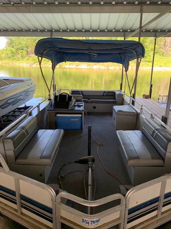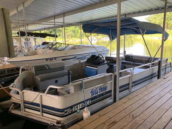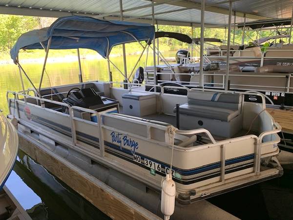 Exceptionally Nice 1992 Party Barge 21’ Pontoon Boat, Motor, and Trailer (Trailer has New Tires & Wiring)