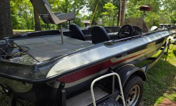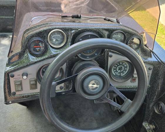 Boat and Motor in very good condition,Trailer, Tires in good shape, all kept indoors. Full cover with wooden ribs. Gas throttle is a HOT FOOT!! Very cool. Both hands on steering wheel. Has lots of extras. Motor size. Stainless steel prop.