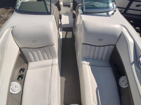 erc 496 Mag/375 HP* 767 Hours (at time of listing) Bravo III Drive* Bimini Top* Mooring Cover* Trim Tabs* Ski Tow* Dual Batteries* Captain's Call Exhaust* Carpeting* Compass* Depth Finder* Fm/Cd Stereo* Trailer