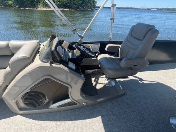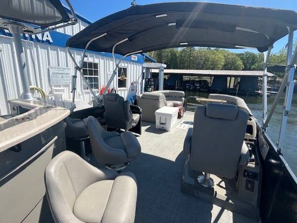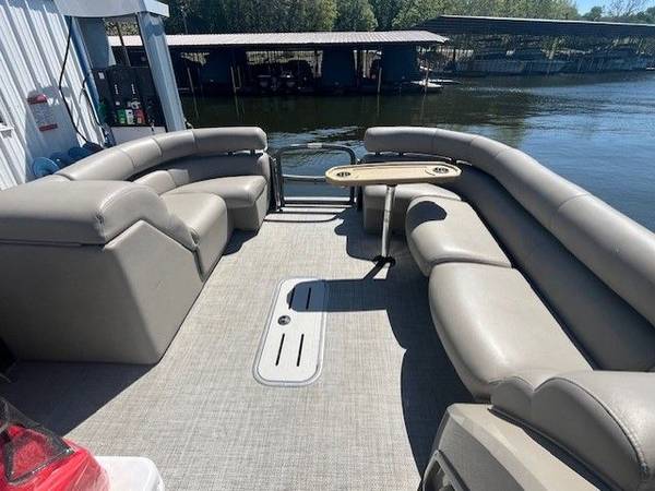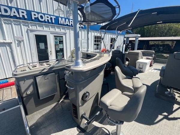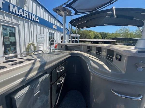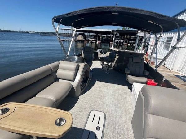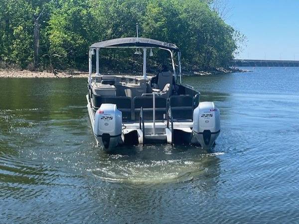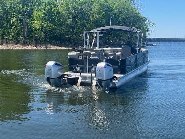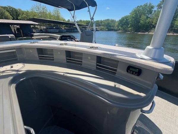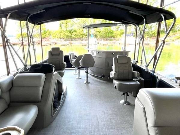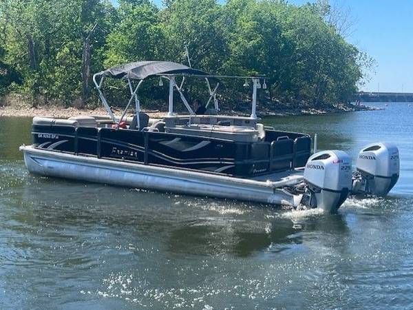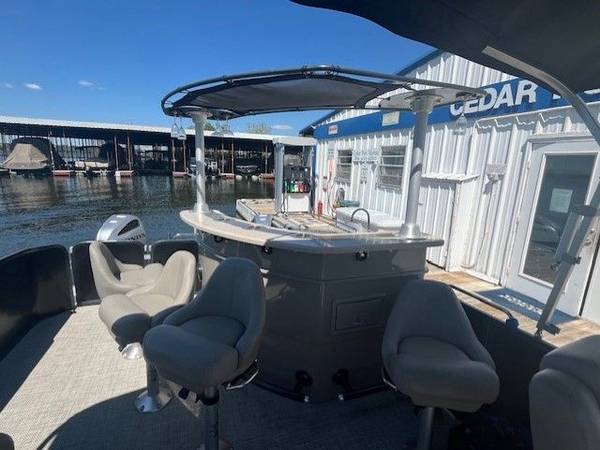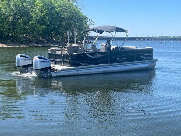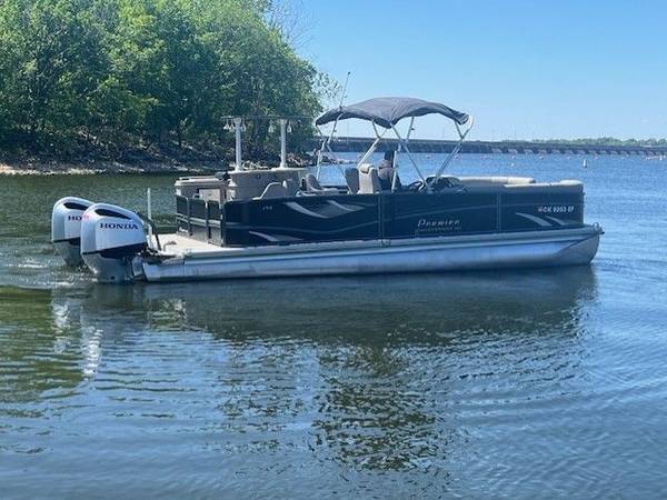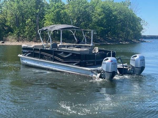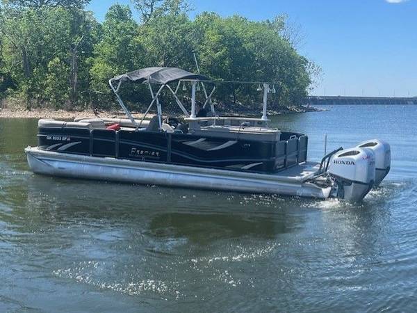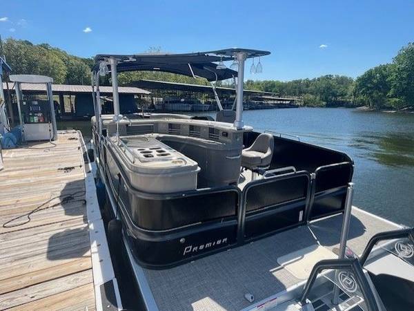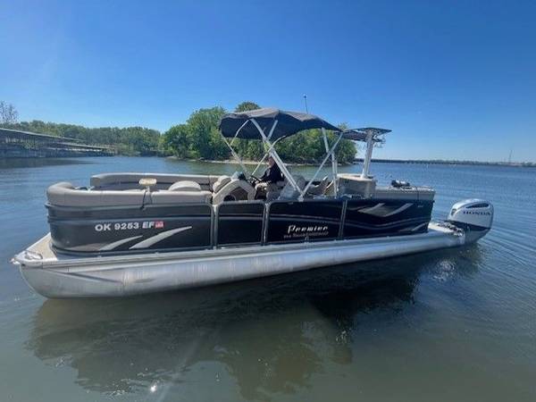 This is definitely not your mom and pop's pontoon! When they call it the Grand Entertainer, Premier means entertainment! The Grand Entertainer PTX will exceed your expectations! This performance technology tri-toon includes Joystick controlled, low hour, twin 225HP Honda Engines, Island bar with four stools, Isotherm refrigerator, sink, and seating enough to accommodate 16, tow Pylon, ladder and more. Everything you need to entertain in grand style! This one comes to us at the right time to make your summer time, lake time the Grandest of all time! Come check out this amazing boat before it's gone. Bimini top is completely in tact and undamaged just not fully up in this photo. No Trailer. Call Jerry Cookson at Cedar Port Marina, by the dam, in Disney, OK.