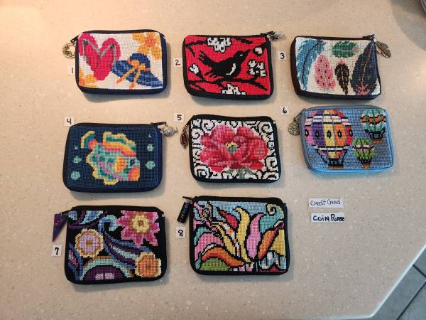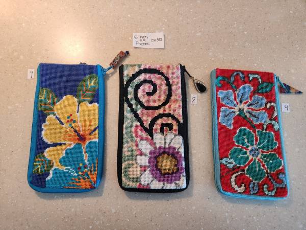 Coin Purses $30 Phone/Glass Cases $40 Cosmetic Bags $50 lined inside with zipper pulls