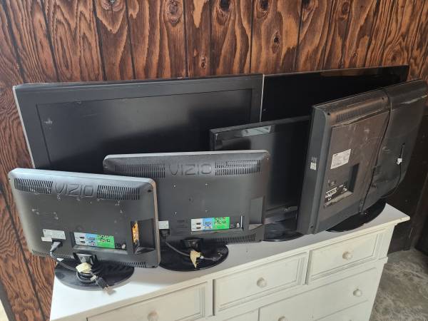 I have a lot of TV's available from vacation rental homes. All in great working condition. Various prices based on size starting at $25 up to $100 for a large 46" TV. All are flat screens with at the very least one (only on a small TV) if not 3 or 4 HDMI inputs on the larger ones plus other types of inputs/outputs. All have factory remotes with them. All are priced well to sell. See photos, I have any size in between you may want, contact Mark via email, text or phone show contact info