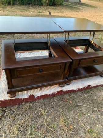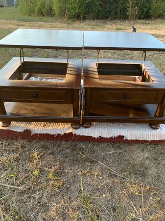 lift-top table, walnut furniture, pop-up desk, game table, snack station, hidden storage, convertible table, nightstand, side table, multifunctional furniture, rustic decor, living room upgrade, auction alchemy