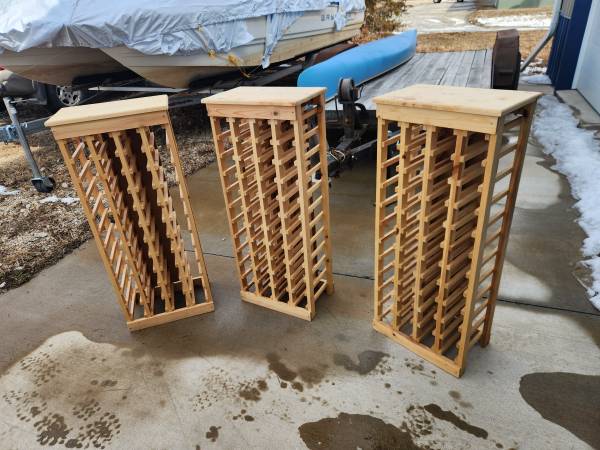 I have available two like new wooden wine racks that I have priced each to sell, take one or both for your wine racking needs. The are priced to sell! Contact Mark via email, text or phone at: