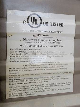 Excellent condition outdoor wood boiler. Bought new in 2019 when my grandmother passed. Paid 12,000 plus tax and had a 6 month wait. The unit is yours in fully functional condition for less than half price!