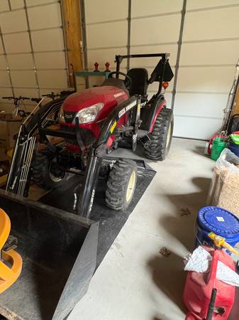I purchased this tractor new in 2023. Current hours are 71. Comes with loader, Yanmar tiller, brush hog, box blade, plus two other attachments. Also, comes with transferable 10 year power train warranty (approx 8 years remain). 4x4 diesel (<25 hp) with locking rear differential. Has 2 PTO drives.