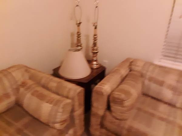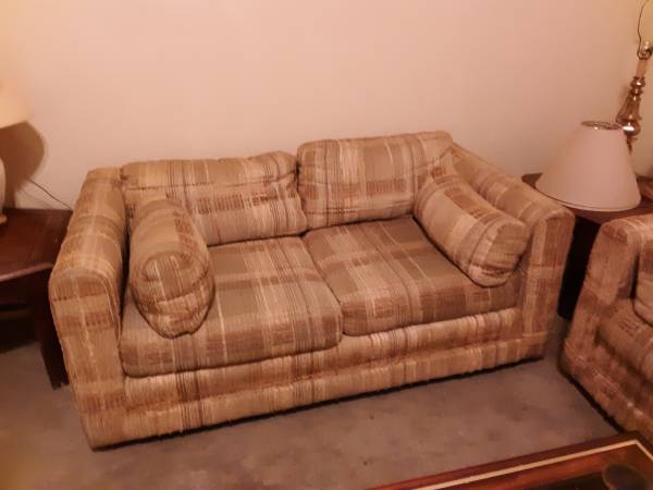Living room set of couch, love seat, 3 end tables, 2 coffee tables. Used but still useable. Marvin (Voice Only / No text)