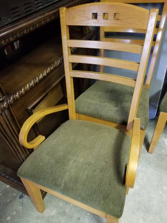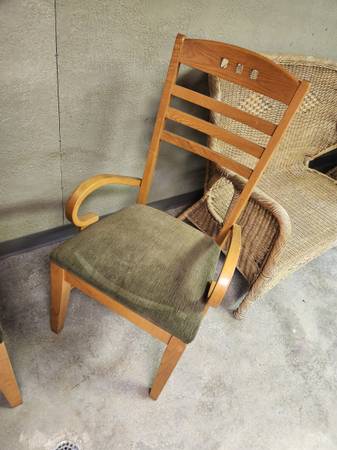 I have three nice cushioned solid wooden chairs available. Priced each to sell. Take one, two or all three. Contact Mark via email, text or phone