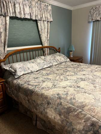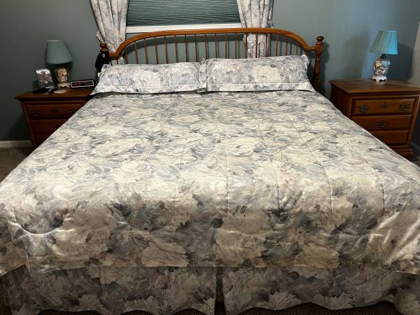 King bed - $500 Oak. Purchased at Missouri Furniture. Great condition. Bedding not included. Cash only.