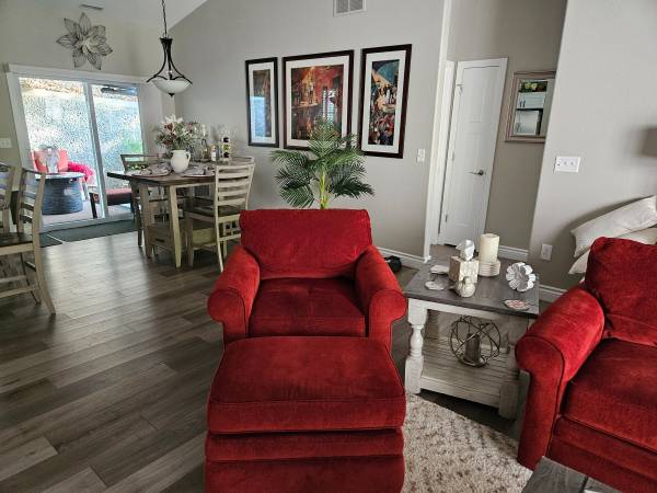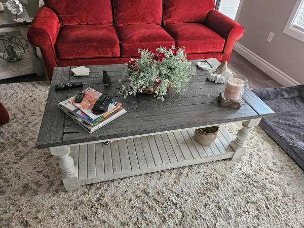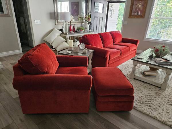 Lazy Boy couch 84 inc, Overstuffed chair, ottoman, Coffee Table, 31x54 and end table 26×26 2 years old, im remodeling and buying a sectional. Great condition. Furniture is brick red. End Table and...