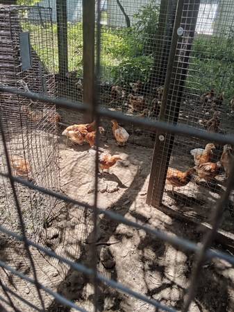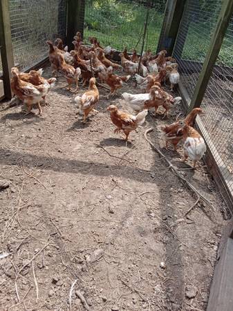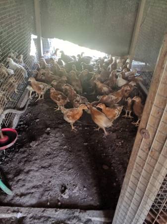 Also some roosters. 1 2 year old Rhode Island Red, 1 almost 3 month old Rhode Island Red, 6 Cinnamon Queen 4 1/2 Month old ,