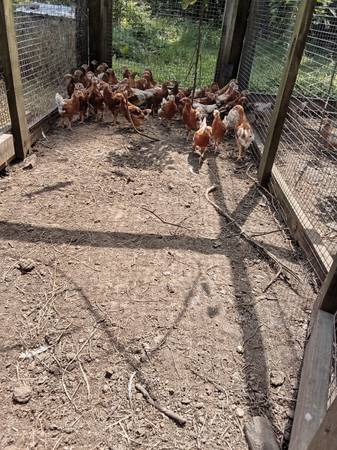 A few Rhode Island White hens 12 to 15?? Hatched 7-20-2025 2 1/2 month old $ 12.00 Ea