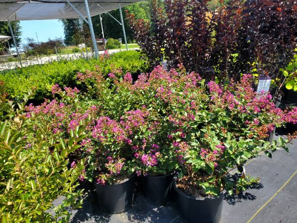 (We have dark leaf crape myrtle that bloom red, and lavender. Rumblin-Red and Lavender-Blast. $24.97.)