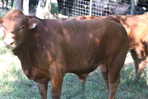 We have 6 yearling limousin bulls for sale and 2 red bulls that are 18 months old (one of which is a fullblood). All out of registered limousin stock. $3600 for each yearling bull (semen tested and vaccinated); the red ones are all purebred, out of a fullblood bull. Call for information about the older bulls.