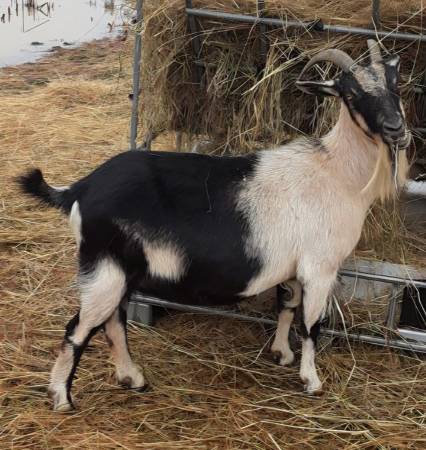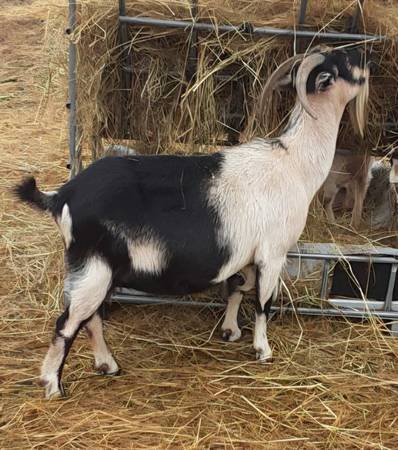 5 yrs old - 98 lbs - She has given us 10 kids over the past four years, and she is a good mom to her kids. She is also good with other goats, goat kids, dogs, and cats but will be protective of her kids or food if need be. She is electric fence trained and has been fed a diet of grass and hay and occasionally alfalfa pellets. She has also had access to free choice minerals. She has been given the CDT vaccine along with copper boluses. We are selling her is because we have too many females for the size of our land and also she is sometimes mean to our sheep. She is pretty outgoing with people, especially if she knows you have food. We are willing to sell her along with her son (the brown Spanish/Kiko wether) as a pair for the discounted price of $350 all together. Contact 3one4sixzero9one9twonine if interested.
