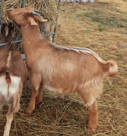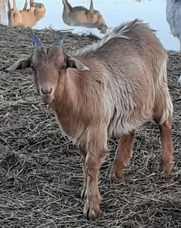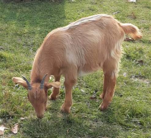 6 1/2 mos old - 48 lbs - He is good with goats, goat kids, sheep, and lambs as well as dogs and cats. He is electric fence trained. He has been fed a diet of grass and hay and occasionally alfalfa pellets. He has also been given free choice minerals. He has been given the CDT vaccine along with a copper bolus. He would be great for cleaning up brush or "cutting" the grass and reaching places that are hard for you to get to. He is shy with people but not unkind. We are willing to sell him with his mother (beige & black Spanish Doe) as a pair for the price of $350 all together. Contact 3one4sixzero9one9twonine if interested.