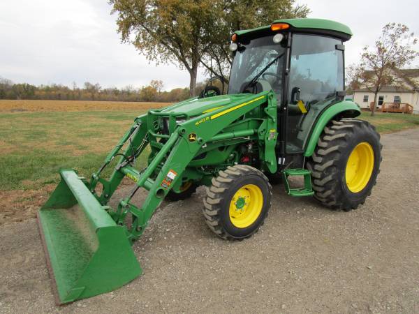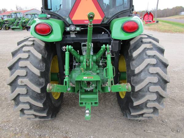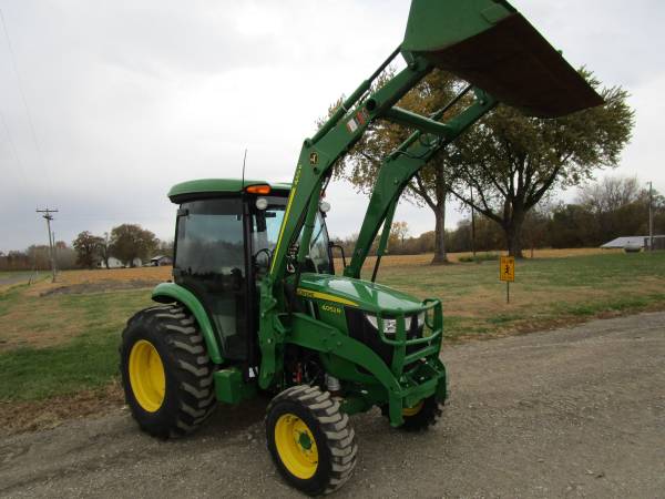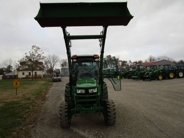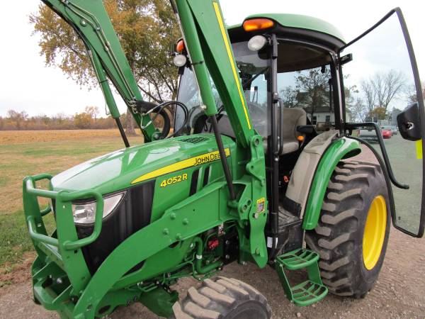 2022 John Deere 4052R tractor, 4wd, 759hours, factory comprehensive extended warranty March 20, 2028 or 1000 hours, limited basic and emissions warranty March 14, 2028 or 2000 hours, 52 horsepower, hydrostat transmission, 3 point hitch, 540 pto, cab, air, heat, stereo, diff lock, grill guard, R-4 tires, rear 440/80x24 @95%, front 10x16.5 @90%. Comes with a John Deere 440R loader with 3 function joystick (plumbed to front for grapple), mid valve and 6' quick attach bucket. No DEF. Very nice tractor, excellent condition. $42,500. Trades welcome. Financing and delivery available. Lots of tractors and equipment at bnttractor.com