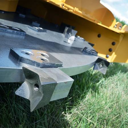Diamond Mowers’ SK Disc Mulcher Pro X is the best solution for mulching smaller-diameter trees and brush. The design of the disc acts like a flywheel to store energy. This stored energy combines with hydraulic power to enable you to mulch any trees or brush in your path. The shape of the disc and position of the teeth allow you to safely and effectively cut down and mulch material.