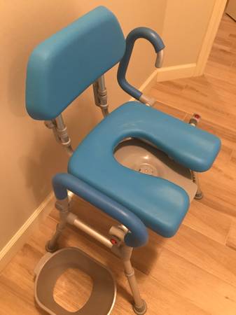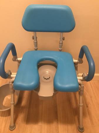 Platinum Health Foldable Soft, Warm, XL Toilet seat , Padded pivoting Armrest, Adjustable Height Blue New was $179.00 Life saver price $75.00