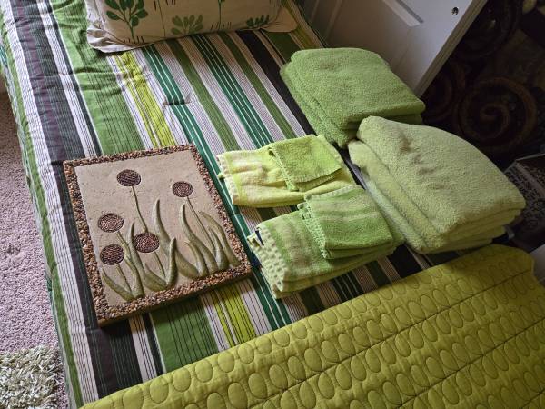 Set of Matching Twin Bedding/Sheets & Bathroom Accessories - $120 (Sunrise Beach, MO)