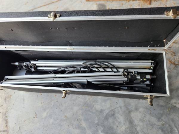 I have a carry case with Vintage Studio lighting tripods, lights and reflectors. Excellent condition. Priced to sell, contact Mark via email, text or phone at: