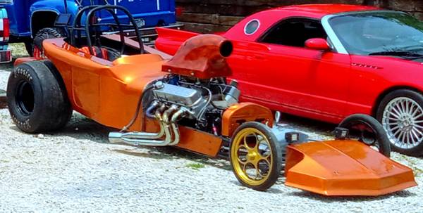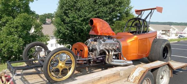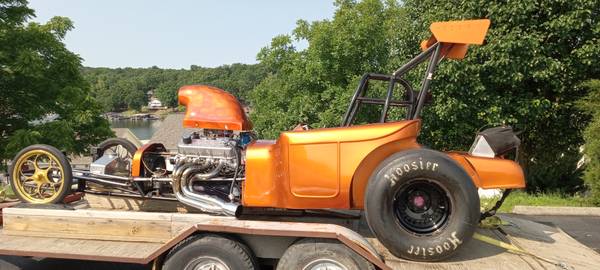 Has chute and wheelie bars. Nice power glide w/brake. The car works well runs low 5's w/no effort. New slicks, engine/trans fresh and solid. Will trade. What do you have?
