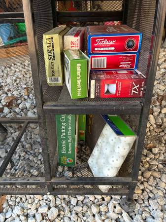 Extras big Bertha driver, and training clubs and videos, putter ball return, new balls still in packages. Plus big basket of used balls. Foam & plastic balls for practice.
