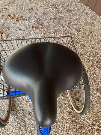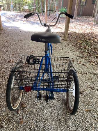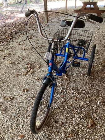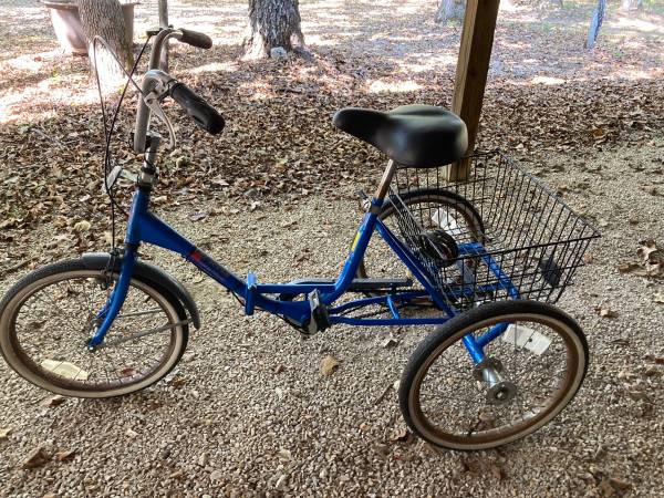 Nice adult, 3 wheel, 3 speed bike. Bike folds up, shifts nice, brakes, seat and tires are good. Easy to adjust the seat or fold up for storage. Paint is good. Some rust on the wheel rims. Color is...