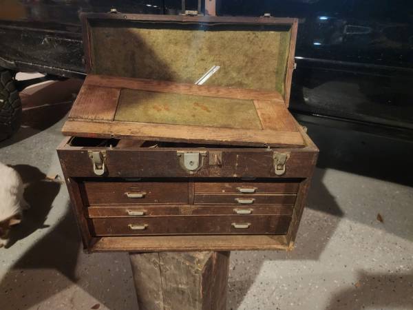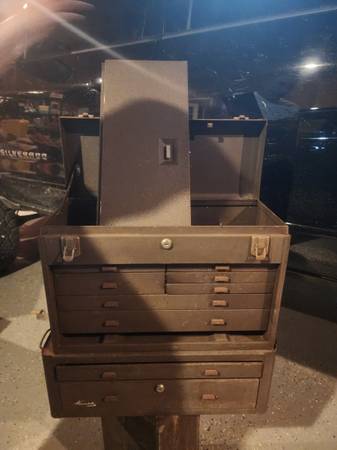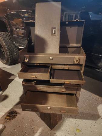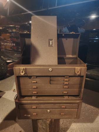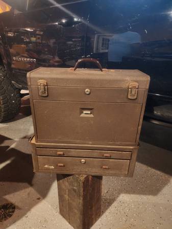 First listed is a Vintage Kennedy tool box. Not perfect condition but still functions and works very well. Asking $80 obo. 2nd listed is I believe an antique Gerstner or Union Machinist's tool box. Asking $100 obo.