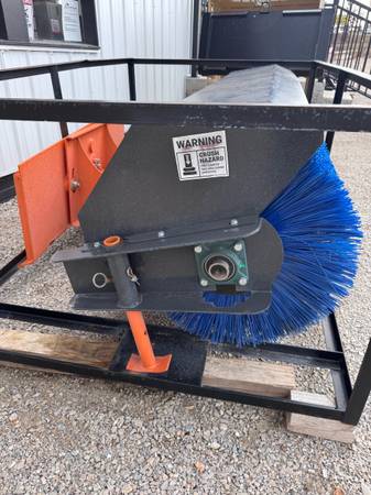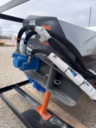 The TMG-AB72 Skid Steer Rotary Angle Broom is a dynamic and versatile attachment that can be used for the effective clearing of debris, sand and snow. A durable direct-drive hydraulic motor powers heavy duty poly/steel wire mix wafer brush bristles that leave any road, parking lot or pathway clean, fresh and tidy. Specifications