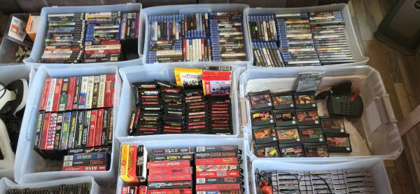 Large lot of video games, consoles, cords, accessories, boxes, cases, manuals storage shelves and bags. Perfect for reseller/collector/store needing inventory. You are welcome to look at in person.Tons of complete games, CIB consoles, handhelds, sealed titles, oem cords, controllers, memory cards, cases, manuals, and boxes. $7k gets it. Easily double that in value sitting here or more. Offers over messenger will be ignored. Discussions about price will be in person only(here's looking at you lowballers and tire kickers) Pickup near Eldon/Barnett area. Price is $7k. Thanks for looking!